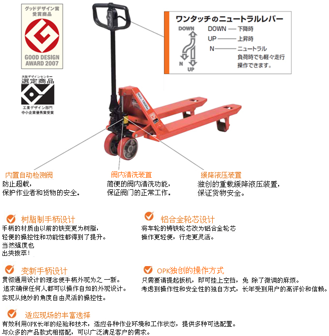 OPK獨創(chuàng)的油泵結(jié)構(gòu),單觸式的空擋杠桿,負(fù)荷時也可輕松操作行駛。