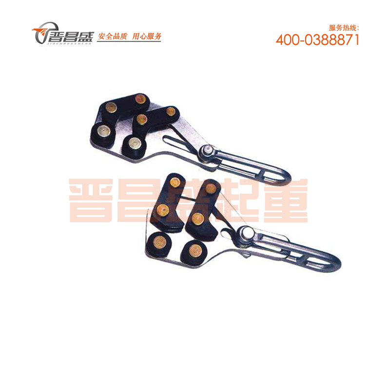 下鉗口有兩個(gè)偏心輪,卡線路承力后偏心輪自動(dòng)旋轉(zhuǎn)并握緊鋼絞線。